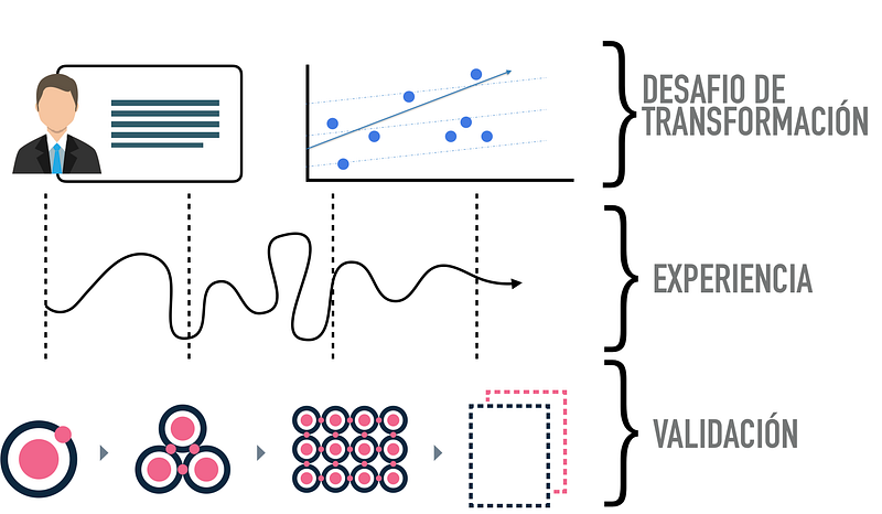 En este ejemplo de Salud, pero extensible a las capacidades o negocios propios de cada compañía, es importante identificar el desafío, a quién le está mejorando la experiencia, qué alternativas se tienen en tiempo de implementación, impacto, satisfacción y desempeño, y a partir de allí, construir una nueva experiencia, la cual se puede validar a través de una serie metódica de pequeñas apuestas (experimentos concretos) que tienen el potencial de ser escaladas.