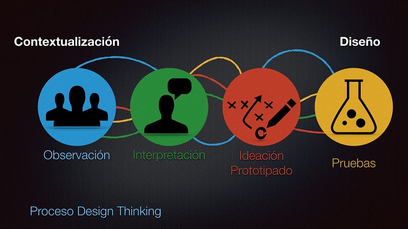Proceso de Design Thinking#### Observación — Empatía con los usuariosSe requiere observar los comportamientos de las personas, sus relaciones, su entorno con el fin de poder obtener conclusiones sobre lo que quieren y sus necesidades explícitas e implícitas.