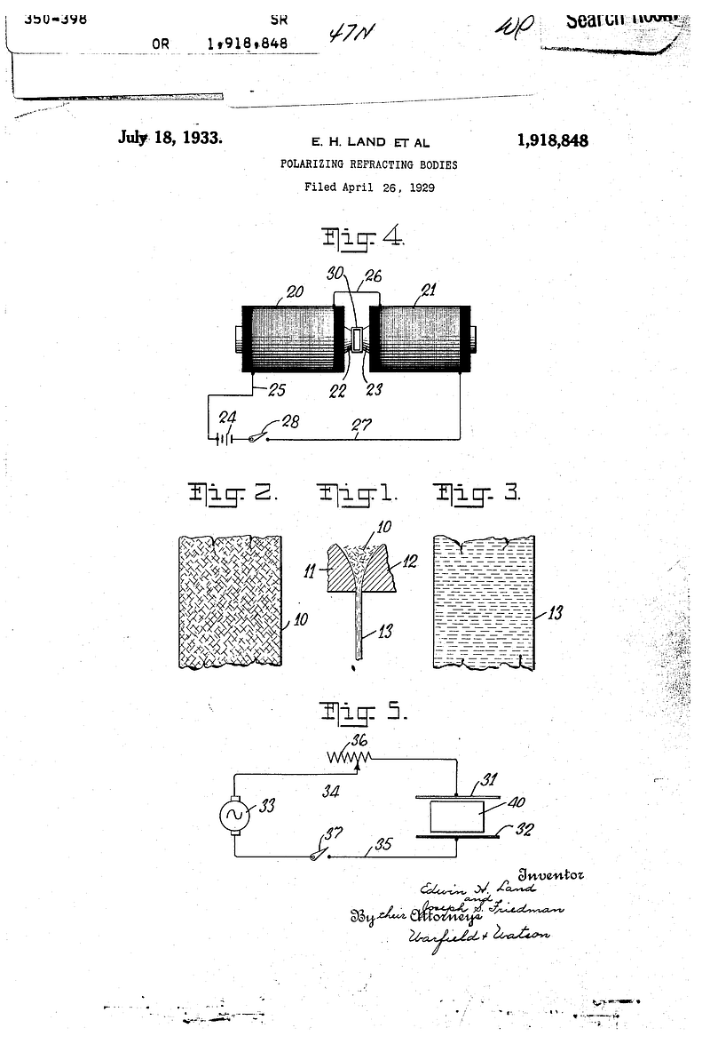 Patente: Polarizing refracting bodies, Edwin H Land, Joseph S Friedman 1929.