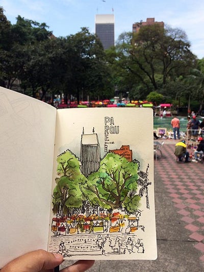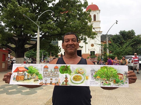 Pero son sus viajes lo que hacen especial a Nel, desde hace unos días viene recorriendo los municipios de Antioquia dibujando paisajes y aventuras. Nel es un dibujante urbano (Urban Sketcher), el líder de la comunidad Urban Sketchers de Medellín, la cual se reúne todos los sábados a recorrer Medellin y dejarla retratada en dibujos, una comunidad sin ánimo de lucro, más un grupo de amigos que comparten el tiempo y su manera de ver el mundo a través de los dibujos.