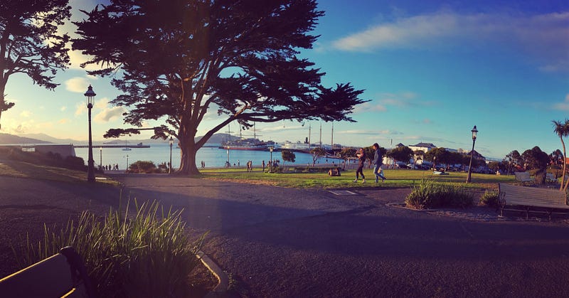 Parte de lo que hace a San Francisco una ciudad fría es su característica de bahía, como recién aprendí en este viaje, el verano es uno de los momentos más fríos, por los vientos que constantemente están ingresando. Esto por termodinámica como tal, a mayor calor el aire caliente sube y el frío debe ocupar ese espacio, y en toda la costa la bahía de San Francisco es el espacio por el que a gran presión pasan estos vientos fríos.